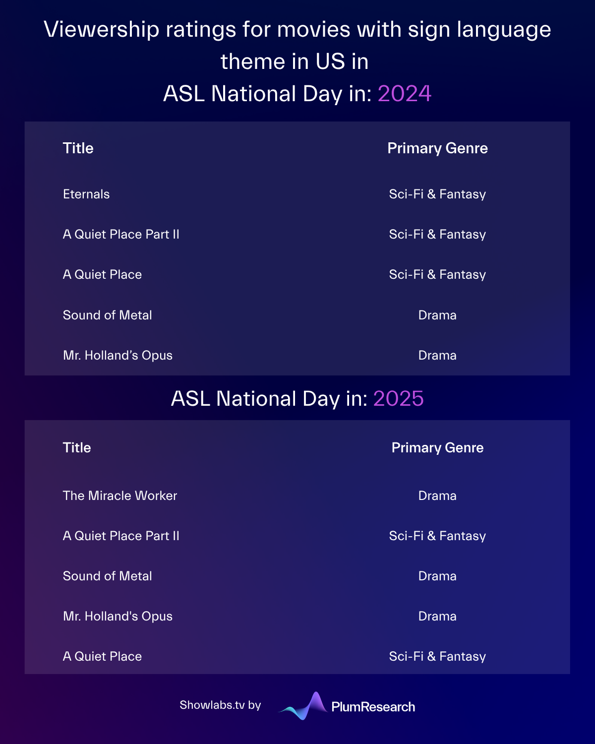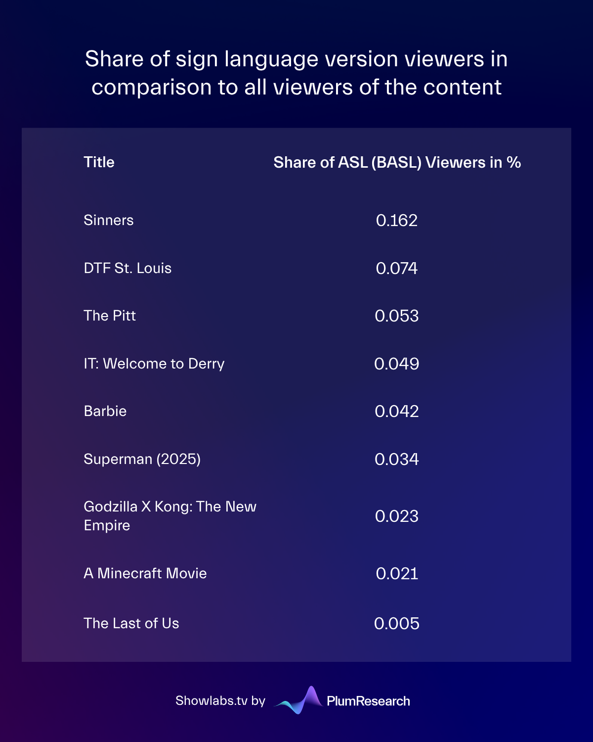 Below you can find what percentage of unique viewers chose the ASL version in comparison to all viewers on the American market: